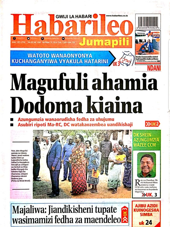 PITIA VICHWA VYA HABARI KATIKA MAGAZETI YA LEO JUMAPILI OKTOBA 13,2019