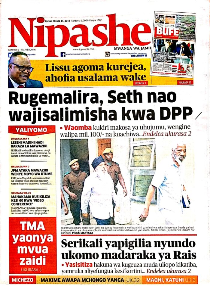 PITIA VICHWA VYA HABARI KATIKA MAGAZETI YA LEO IJUMAA OKTOBA 11,2019