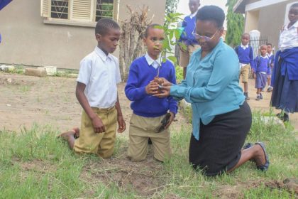 WANACHAMA KLABU YA MAADILI SHULE YA MSINGI CHADULU JIJINI DODOMA WASHIRIKI ZOEZI LA UPANDAJI MITI