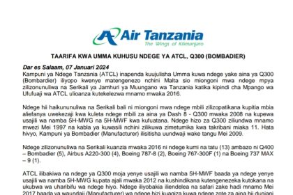 ATCL YATOA UFAFANUZI KUHUSU NDEGE YA Q300 BOMBADIER