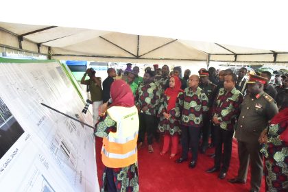 RAIS WA ZANZIBAR MHE.DK.HUSSEIN MWINYI AMEWEKA JIWE LA MSINGI LA MRADI WA UJENZI WA HOTELI YA NYOTA TANO YA CROWN HOTEL AND RESORT ZANZIBAR IKIWA NI SHAMRASHAMRA ZA MIAKA 60 YA MAPINDUZI YA ZANZIBAR