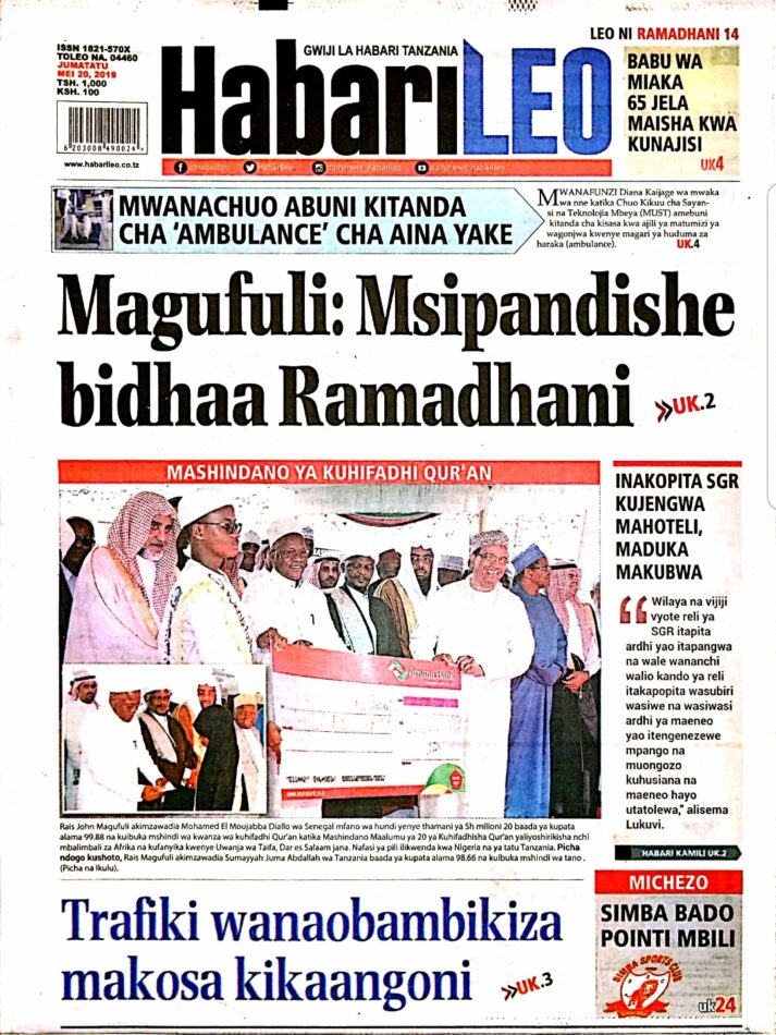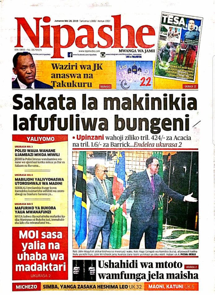 PITIA VICHWA VYA HABARI KATIKA MAGAZETI YA LEO JUMATATU MEI 20,2019