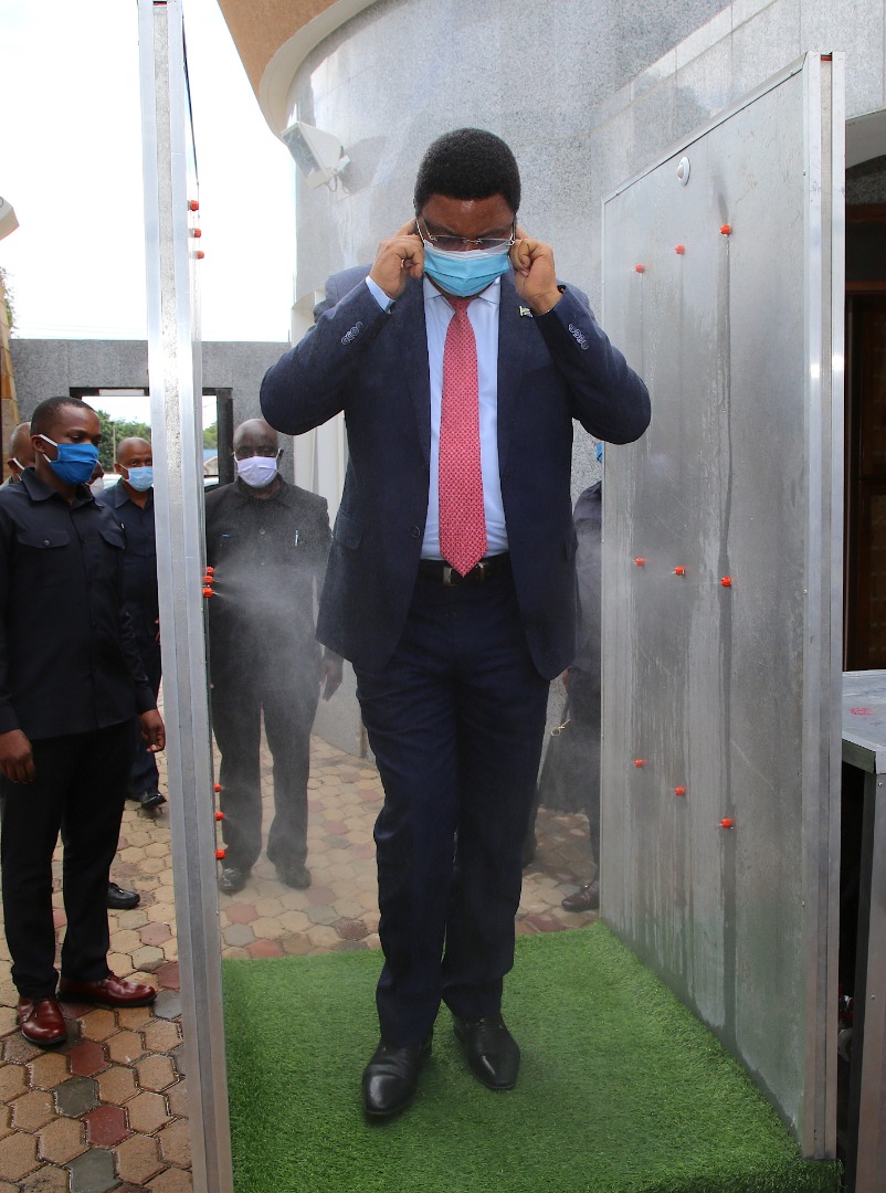 WAZIRI MKUU MAJALIWA AKIPITA KWENYE MASHINE YNYE DAWA YA KUJIKINGA NA CORONA