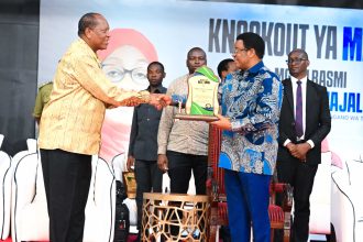 Waziri Mkuu Kassim Majaliwa akipokea kutoka kwa Waziri…