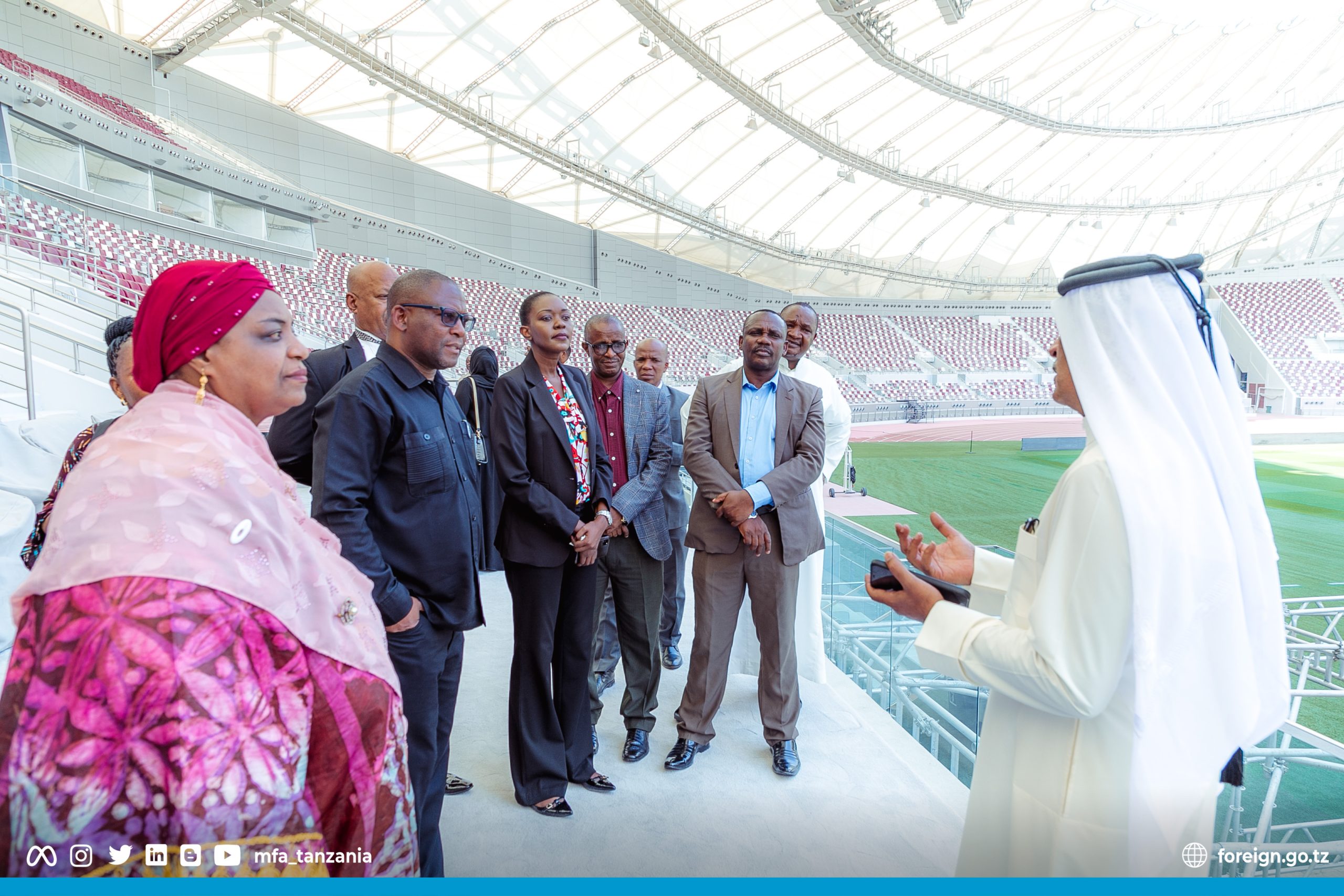 UJUMBE WA TANZANIA WATEMBELEA UWANJA WA MPIRA WA MIGUU WA KIMATAIFA WA KHALIA, QATAR