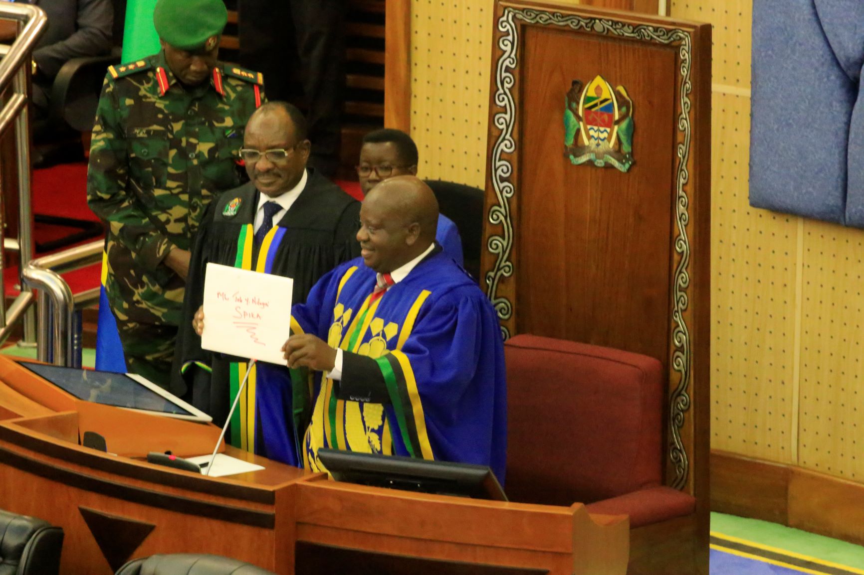 Spika wa bunge Job Ndugai akipokea karatasi yenye…