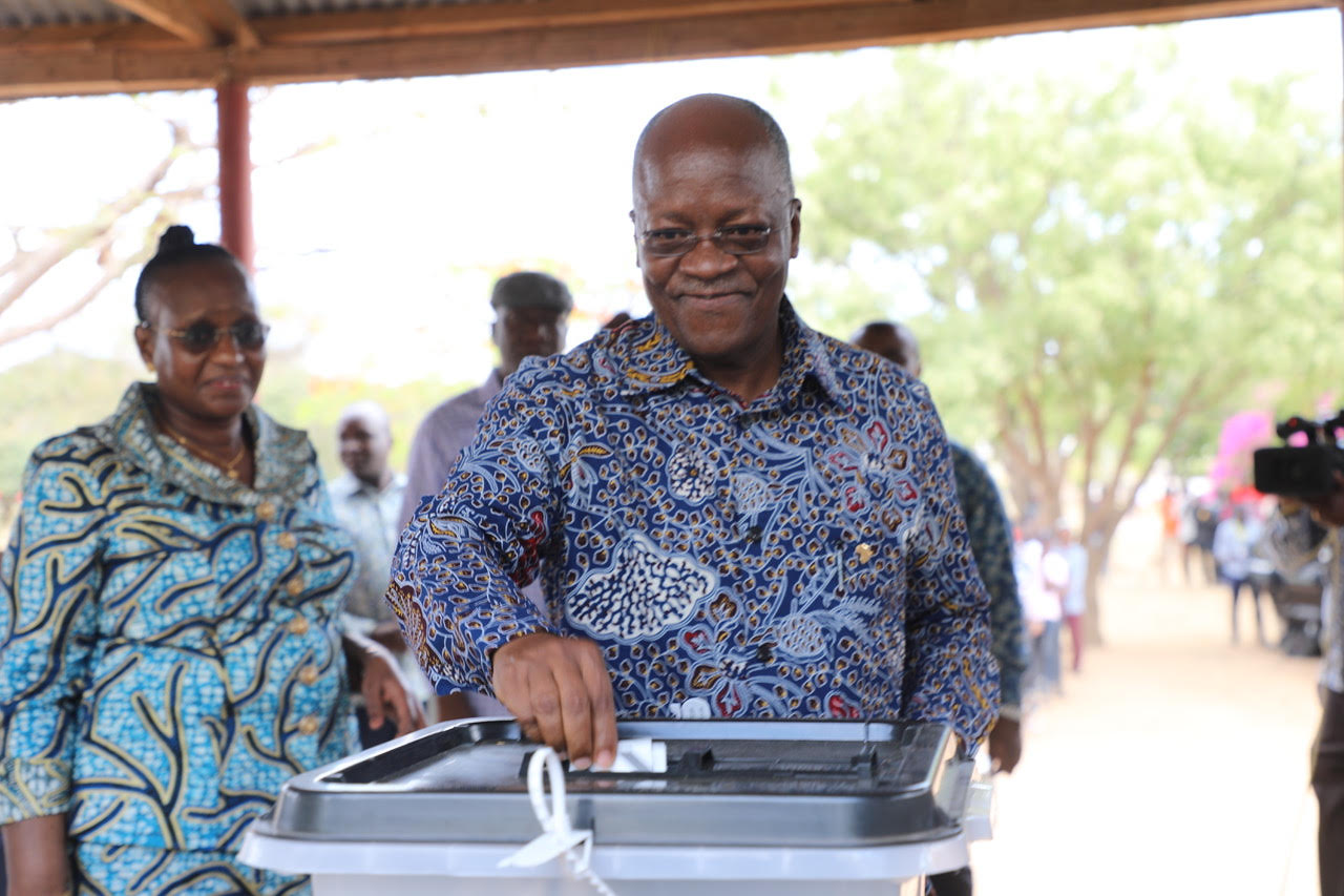 MGOMBEA URAIS CCM DKT.MAGUFULI PAMOJA NA MKEWE MAMA JANETH MAGUFULI WAPIGA KURA KATIKA KITUO CHA IDARA YA MAJI CHAMWINO IKULU JIJINI DODOMA