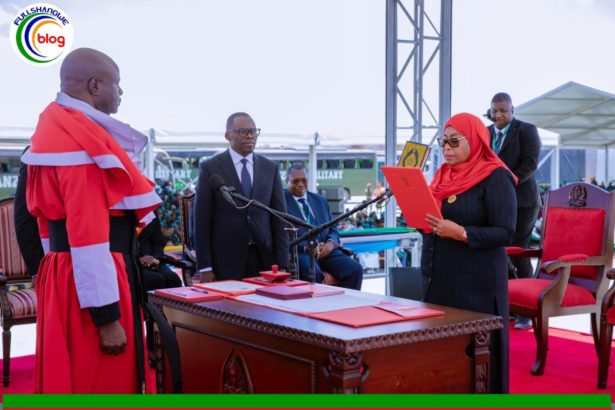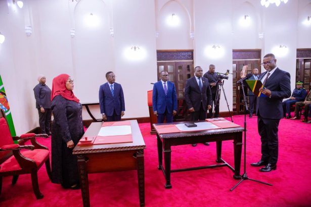Rais wa Jamhuri ya Muungano wa Tanzania Mhe. Dkt. Samia Suluhu Hassan akimuapisha Bw. Hamza…